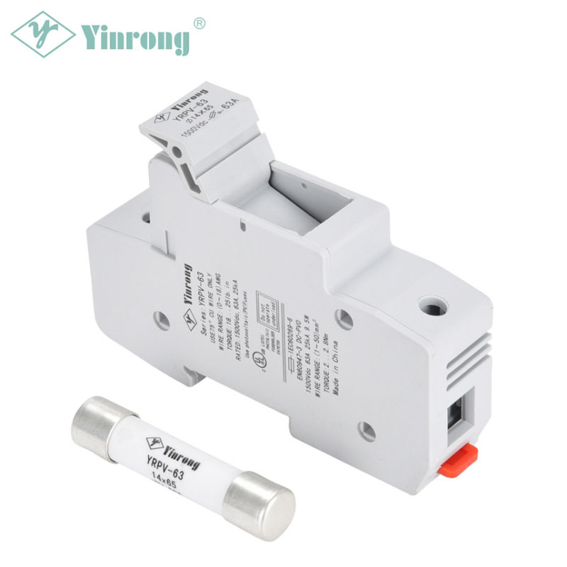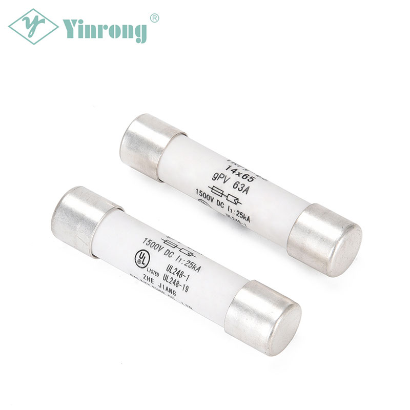 YRPV-63 1500VDC соларна фотоволтаична предпазителна връзка е специално проектирана за защита на фотоволтаичните (PV) системи. Този уникален цилиндричен предпазител с размери 14 × 65 mm го прави идеален за непрекъснат цикъл на тока и ефективно защитава 1500 VDC фотоволтаични (PV) системи. 1500VDC 63A 14×65mm соларна фотоволтаична предпазителна връзка осигурява висока амперна защита от 10A до 63A в малки пространства, за да увеличи гъвкавостта на приложението. Ние сме специализирани в професионалния капацитет за научноизследователска и развойна дейност и контрол на качеството, Zhejiang Galaxy Fuse Co., Ltd. (Yinrong) непрекъснато обновява слънчевите фотоволтаични (PV) предпазители и работи за създаването на по-безопасни вериги в света.