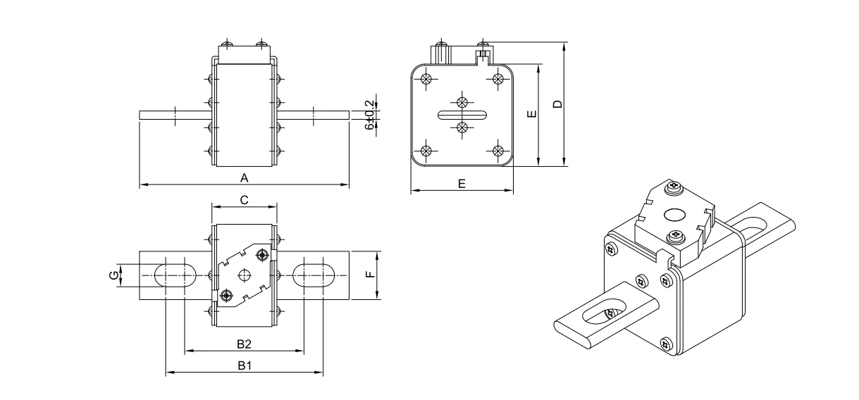 Високоскоростен предпазител с квадратно тяло 1000V DIN
